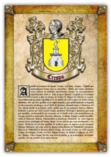 Este libro presenta una lámina que contiene el origen, significado y datos históricos relevantes del apellido «Crespo», así como la heráldica ...