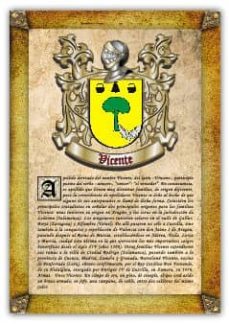 Este libro presenta una lámina que contiene el origen, significado y datos históricos relevantes del apellido «Vicente», así como la heráldica ...